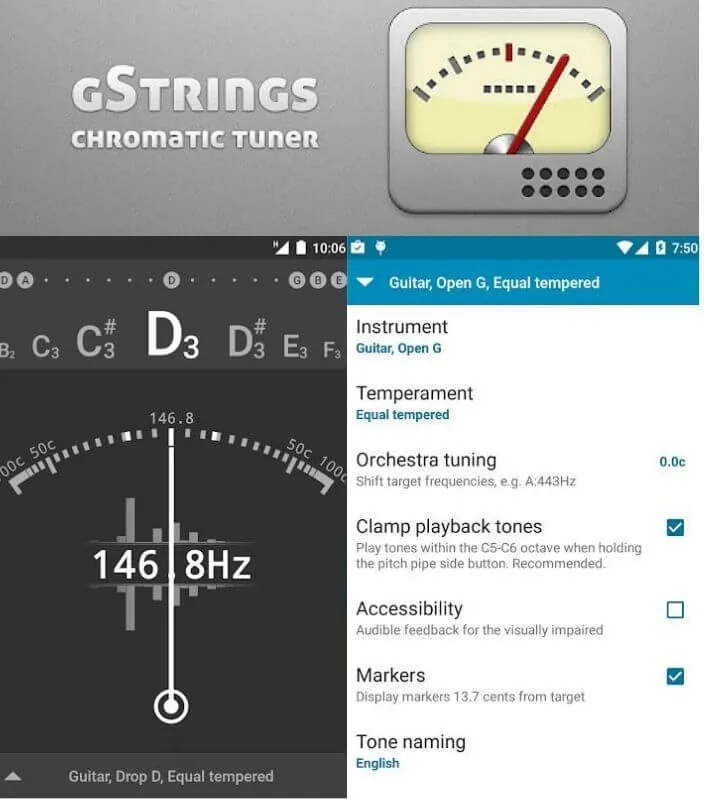 GString Free is one of those apps for you if you need a quick and easy way to tune your guitar. This app lets you adjust the sensitivity of your microphone.