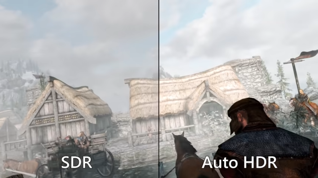 Already introduced on the latest Xbox, Windows 11 will support auto HDR, a technology that improves image quality in terms of color and contrast. To compare the two methods, Microsoft used this snippet from Skyrim when presenting the new OS: Comparison of SDR and Auto HDR technologies on Skyrim © Microsoft